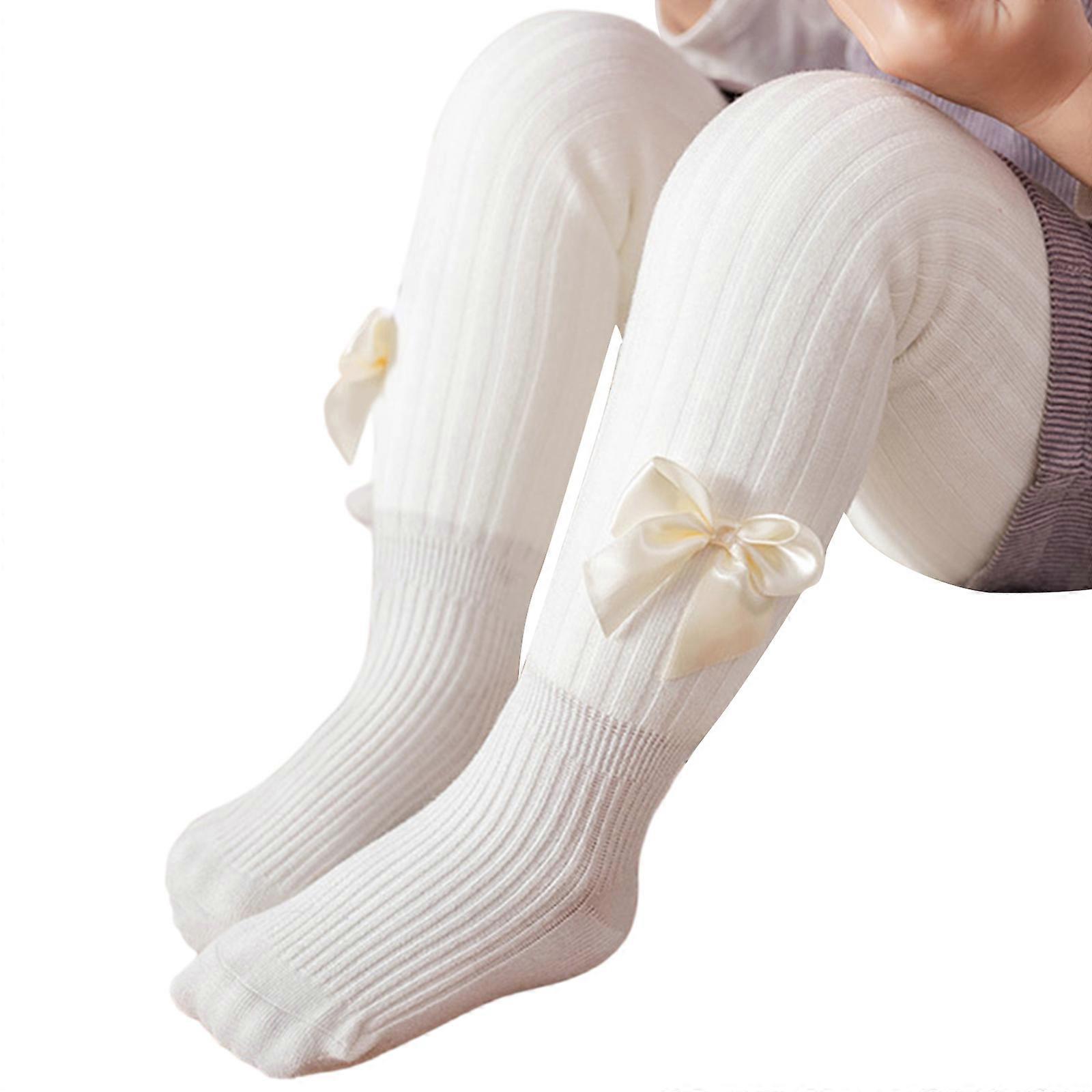 Kids Leggings with Fleece Lining Bowknot, Solid Color Warm and Stylish Baby Pantyhose Toddlers Girls Bottoming Tights White XS
