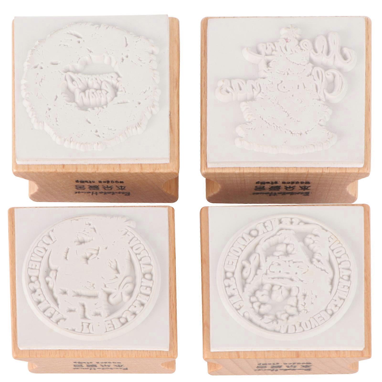 Christmas Stamp Wooden Stamp for Drawing 4Pcs with Festive Patterns