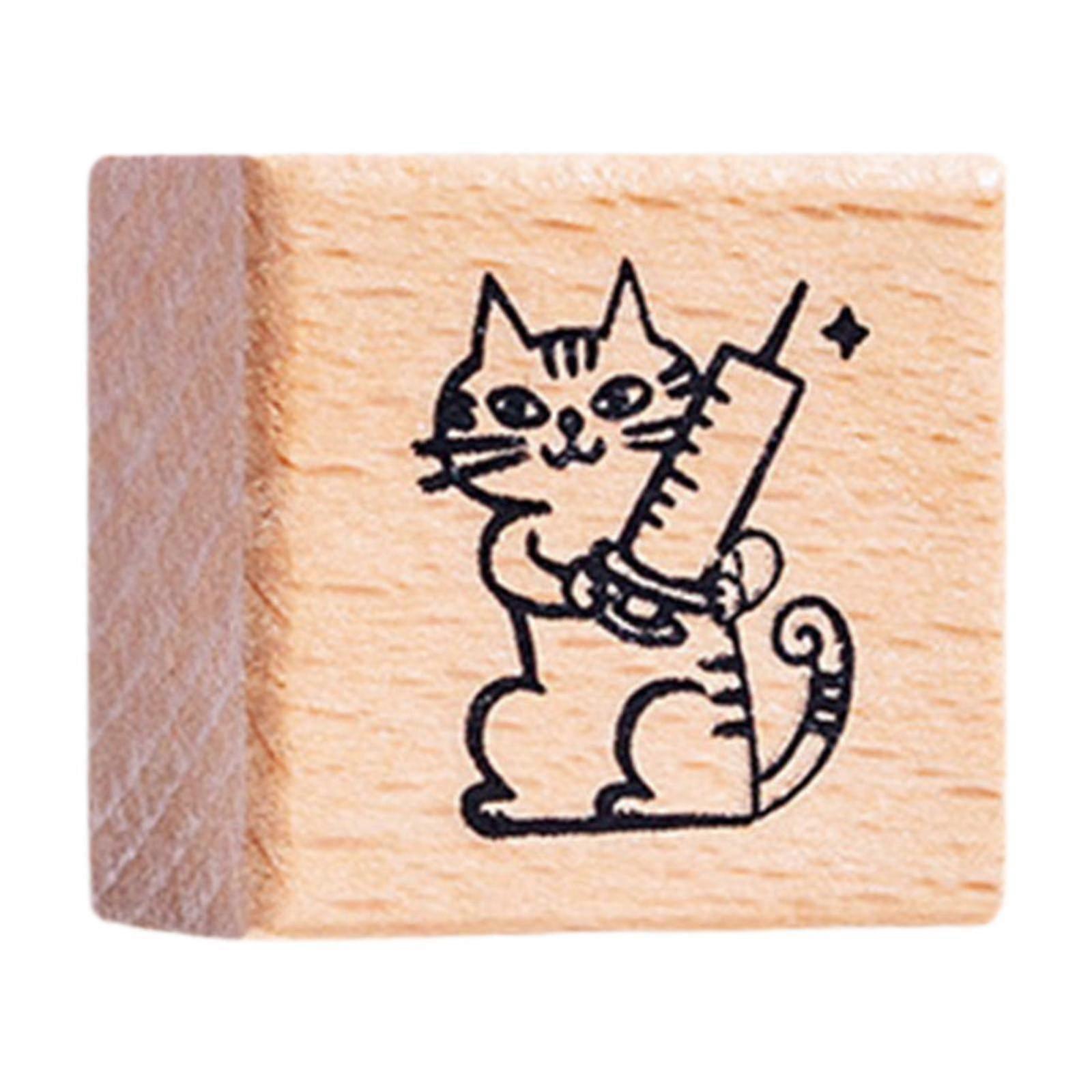 Cat Stamp for Kids Square Small Cute Animal Rubber Stamp on Wood Block for Scrapbooking Mailing DIY Craft Journal Card Making 26s
