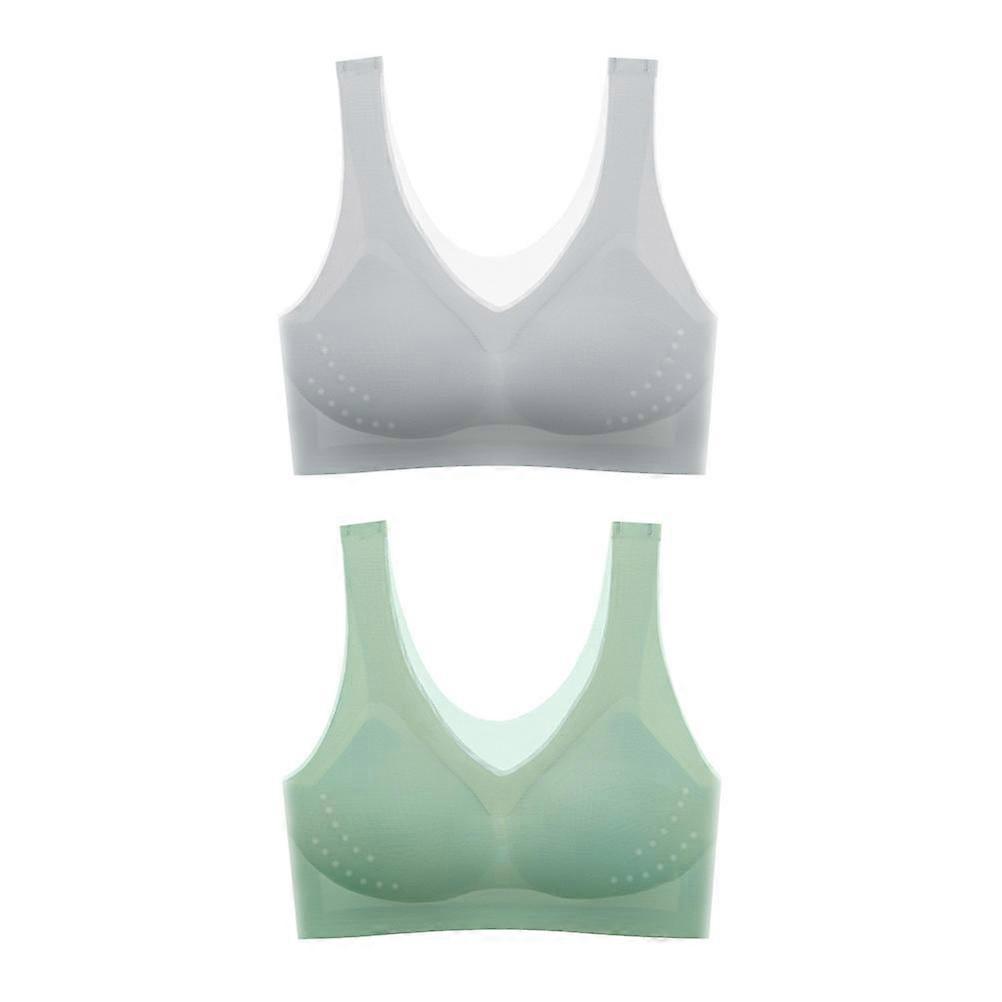 Breast Support Seamless Design Bras Women Sports Activities Stylish Style Nylon Material Light Green 2Pcs