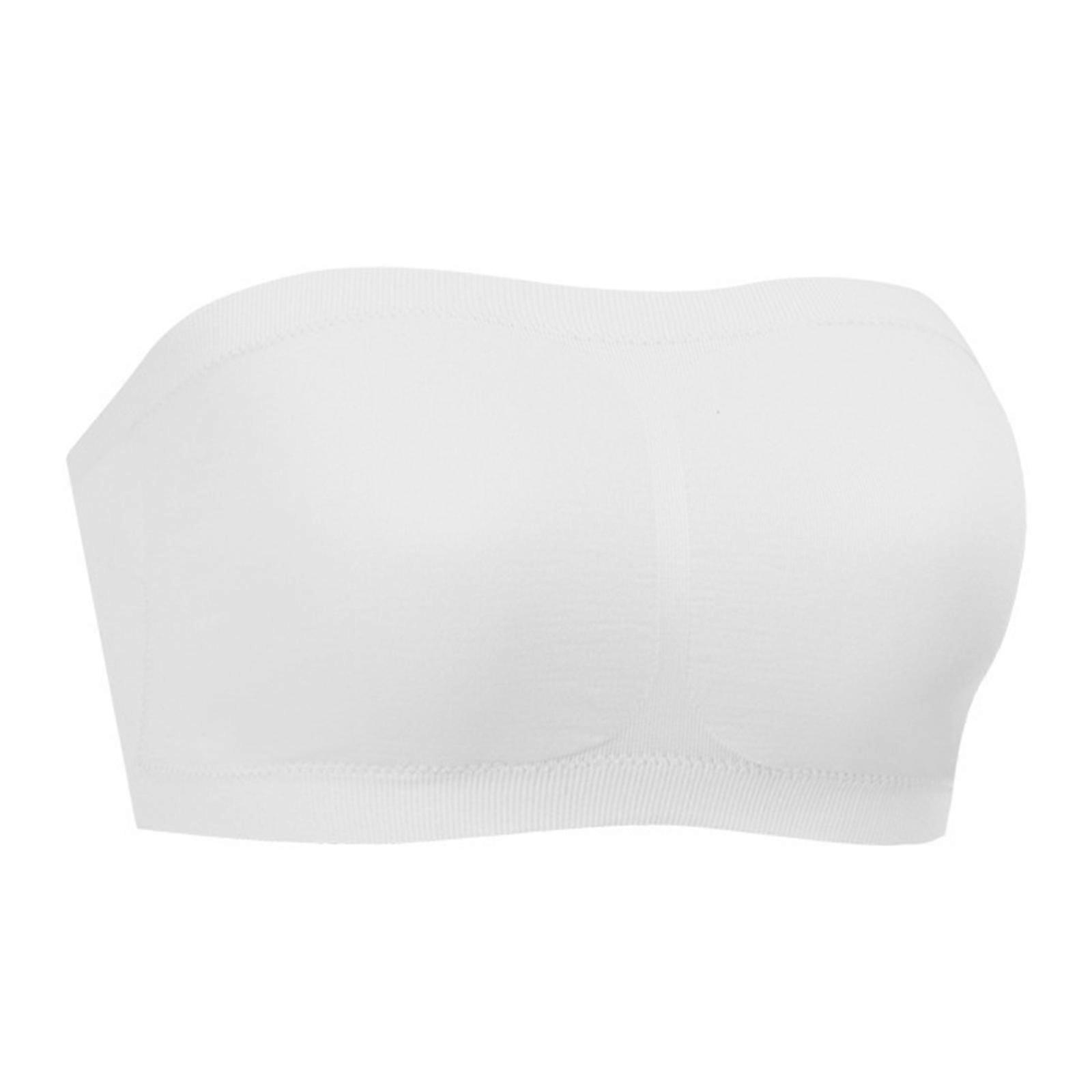 Women's Wirefree Strapless Bra Invisible Comfort Antislip Ribbed Trim Builts In Padded Lift Support Bandeau Tube Top White Universal code