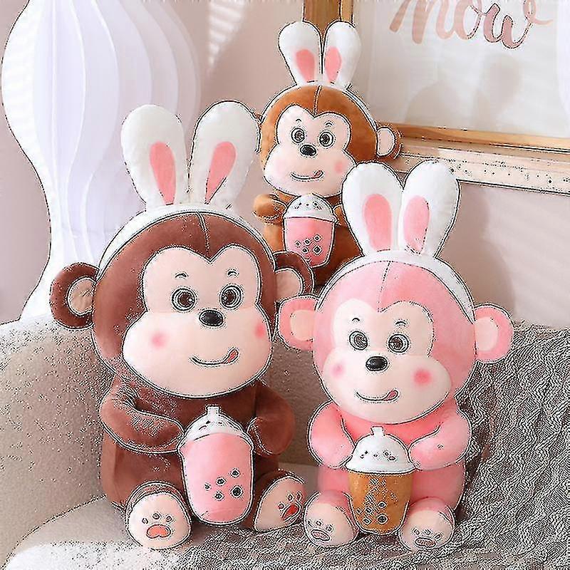 Stuffed Animal Creative Pillow Kawaii Cartoon Bubble Tea Monkey Plush Toy Cup Milk Tea Boba Plushie Doll Birthday Gifts