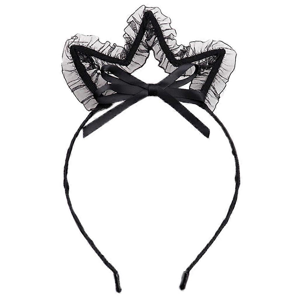 Sweet Black Lace Animal for Cat Ears Headband Bowknot Ruffled Mesh Hair Hoop Masquerade Party Cosplay Anime Hair Accesso Crown