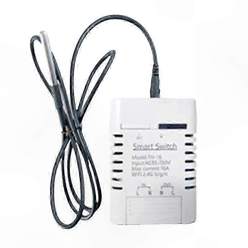 This module enables smart control of connected devices. It supports connecting and controlling one device that can be turned on or off via the eWeLink app. It operates in self-locking mode, allowing users to independently control the connected device. The module supports presetting a temperature range. When the home environment temperature falls within the set range, it automatically turns connected devices on or off. Features: 1. Real-time temperature monitoring 2. Remote intelligent control 3. Includes protective casing 4. Supports power supply output 5. Supports 16A high current load 6. Supports 8 control modes 7. Ultra-high monitoring accuracy 8. Supports status tracking and feedback to the app 9. Supports shared control 10. Compatible with iOS and Android 11. Easy installation and operation with immediate and stable activation 12. App supports multiple languages 13. Supports power supply output Specifications: 1. Product Name: DS18B20 Temperature Monitor 2. Model Number: -16 3. Working Voltage: AC 85–250V 4. Load Voltage: AC 85–250V 5. Load Current: 16A (max) 6. Wi-Fi Standard: 2.4GHz b/g 7. Operating Temperature: -40°C to 85°C 8. Dimensions: 93 x 55 x 30mm Color: As shown in image Material: Plastic Package Contents: 1 x Temperature Sensor Note: Other items not included. Lighting and display differences may cause slight color variation between the image and the actual item. Measurement error allowed within +/- 1–3cm.