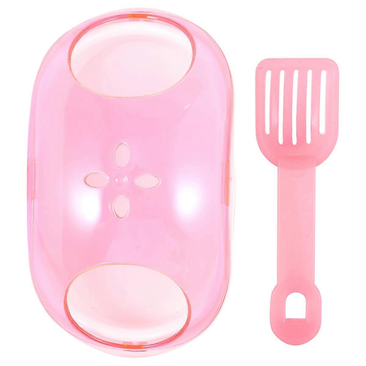 Small Pet Chinchilla Hamster Sand Bath Room House Plastic Bathroom Container with Bath Sand Filter Scoop (Pink, Random Scoop Color)