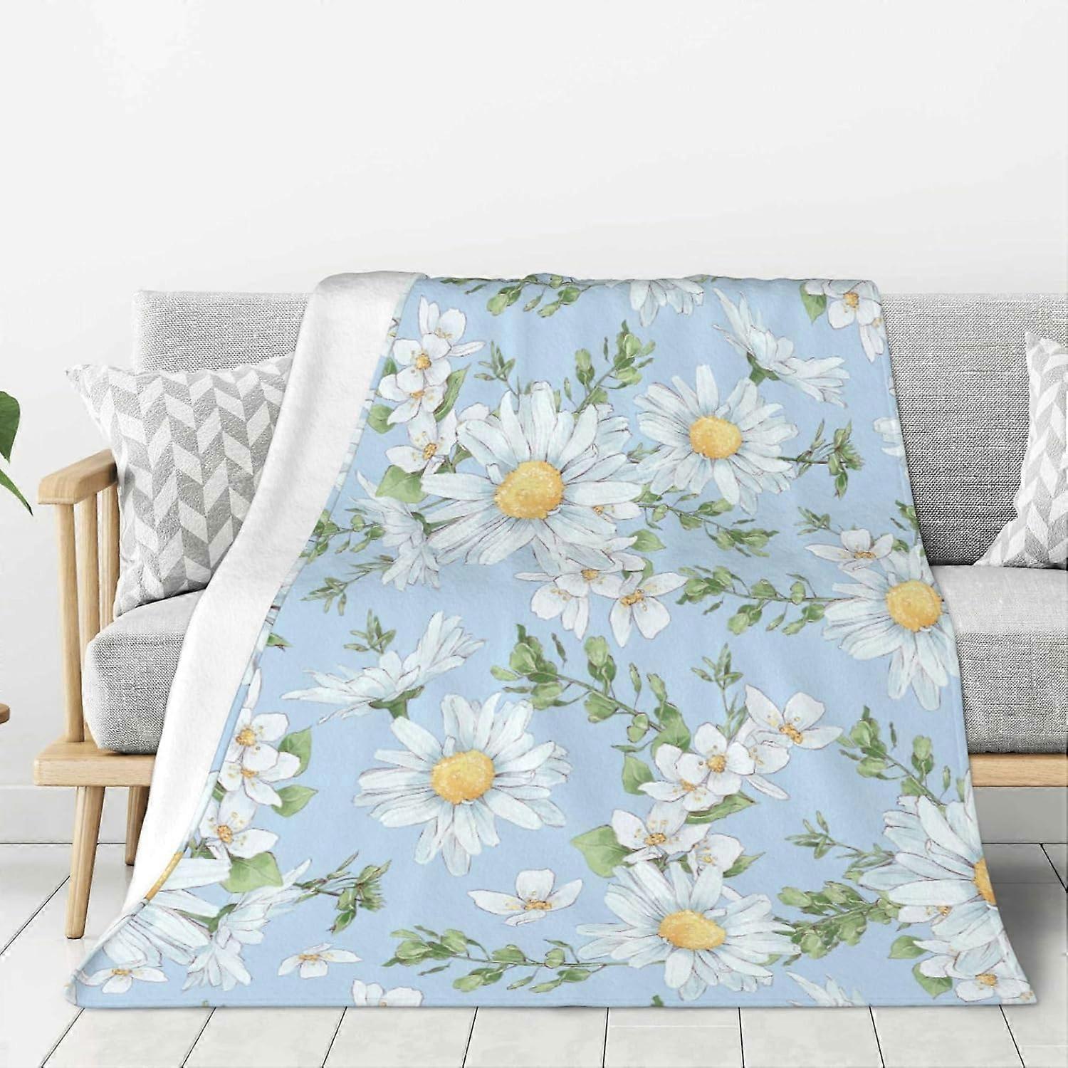 Daisies and Watercolor Wildflowers Fleece Throw Blanket Ultra Soft Cozy Decorative Flannel Blanket for Home Bed Couch Chair Travel 40x30in