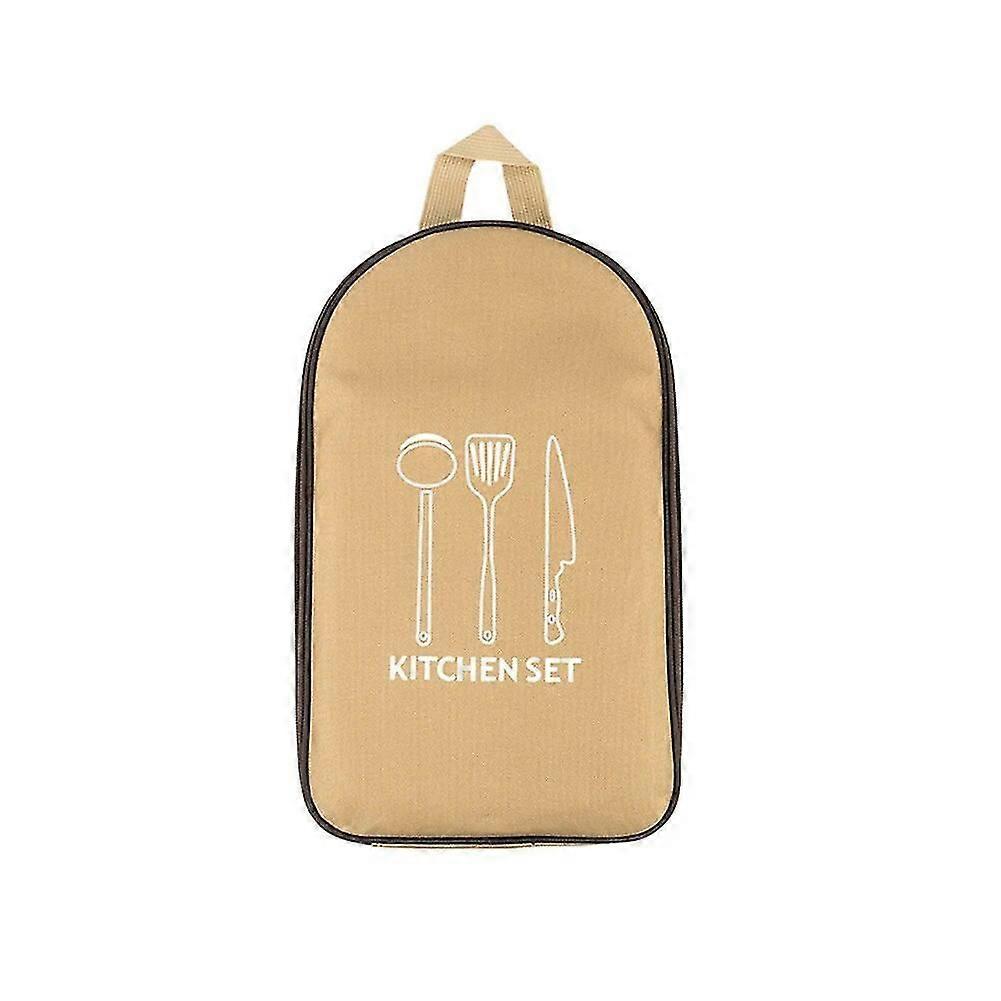 Outdoor Camping Cookware Storager Cooking Utensil Organizer Portable Oxford Kitchen Ware Storage Bag Travel Tableware Pouch (Khaki) JSKEE