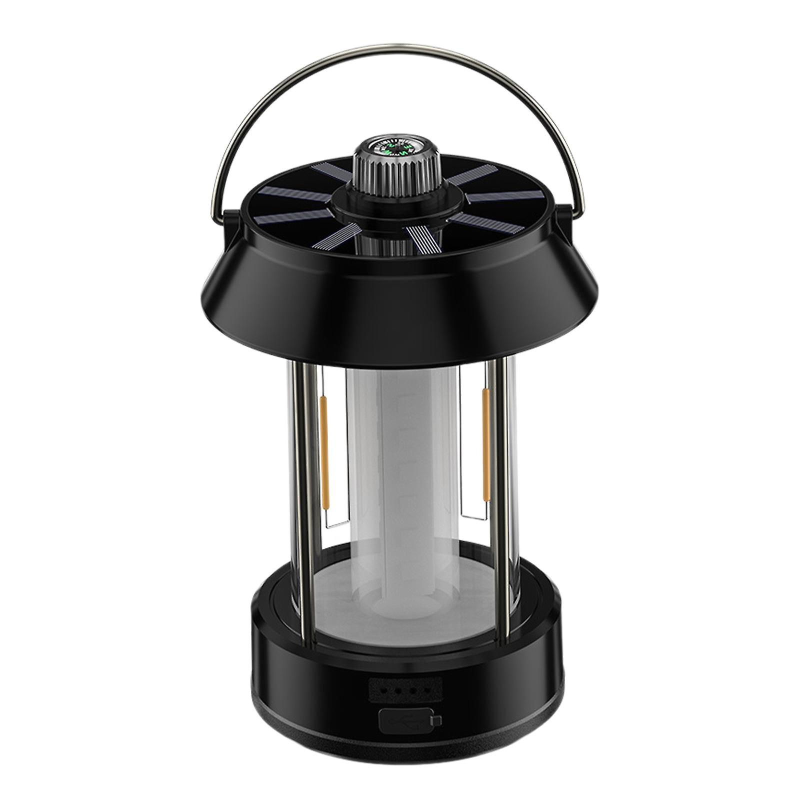 Outdoor Portable Light USB Rechargeable Solar Camp Tent Lamp for Storms Yard black