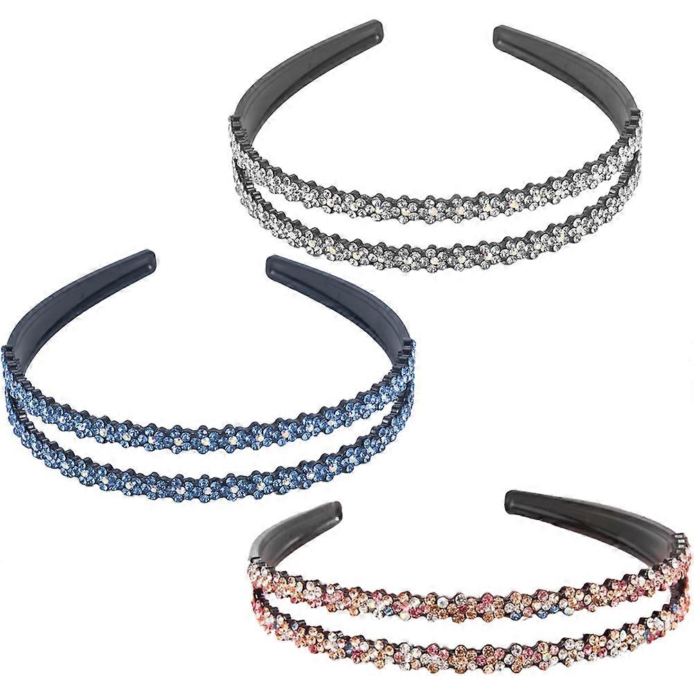 Non Slip Hair Hoop Double Row Rhinestone Headband for Women 9Pcs