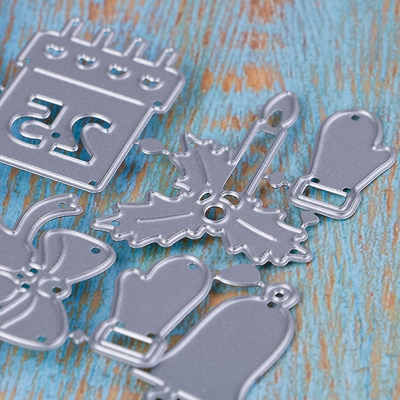 Christmas Cutting Dies Stick Candle Gift Box Bells Gloves Metal Scrapbooking