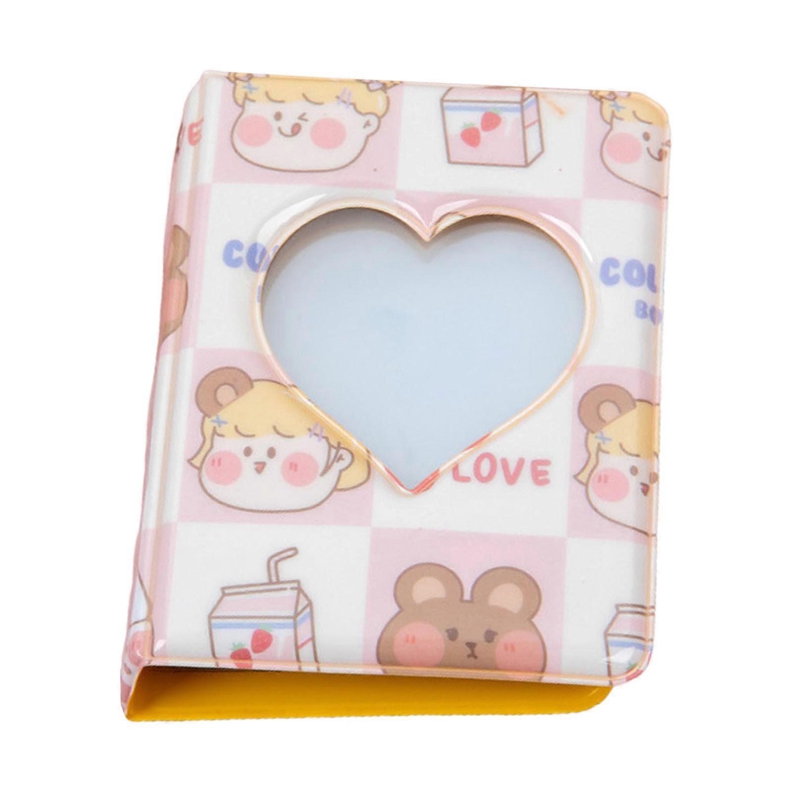 Hollow Heart Shape Mini Photo Album with Insert Pockets 3 Inch 40 Sheets Photos for Photocard ID Card Bank Cards Note Storage Organizer