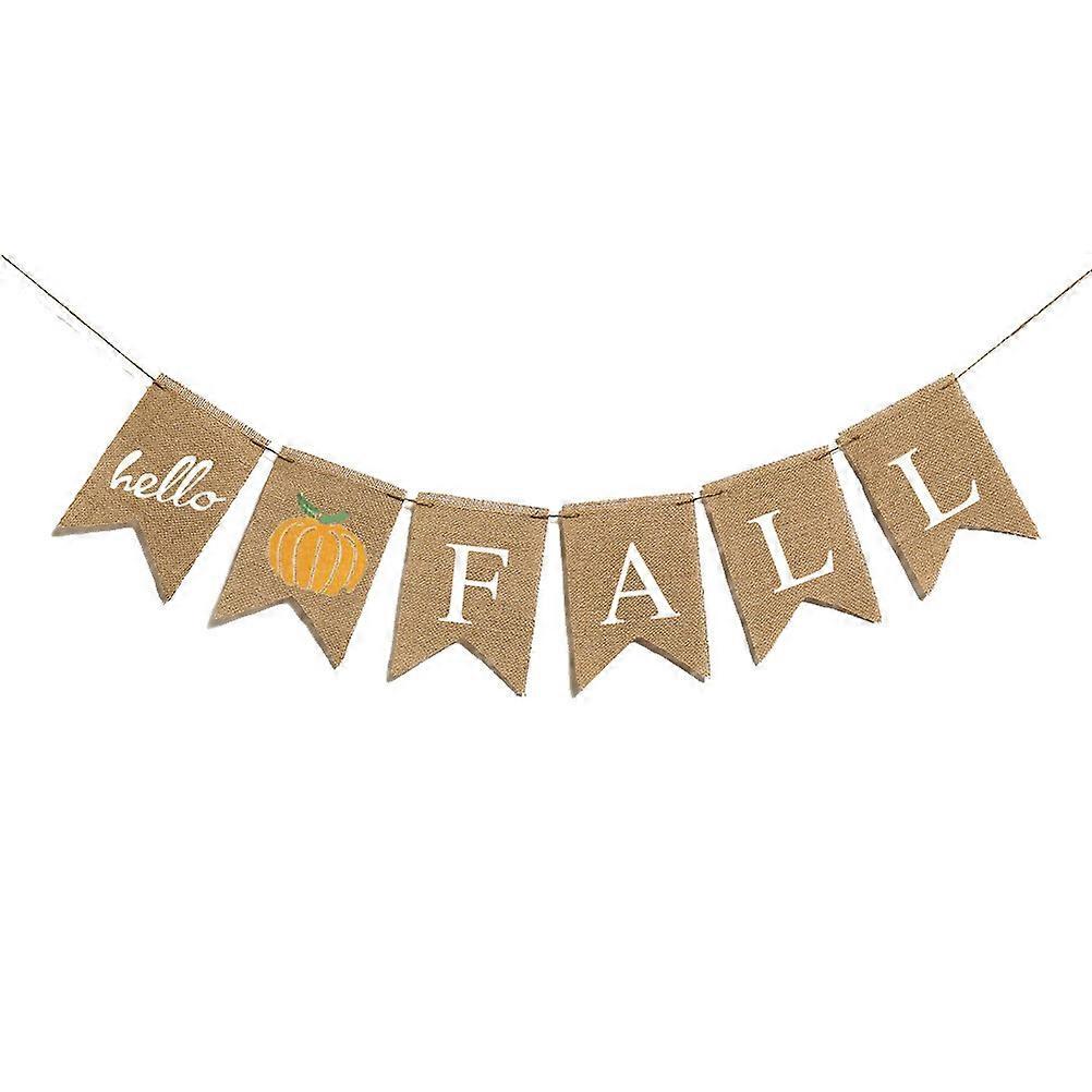Description _x000D_ _x000D_This is a vintage burlap banner, with "hello fall" letters and pumpkin pattern decorated design. You just it on your home wall, ceiling, tree branch to add more festive feelings. Perfect decorative accessory and photography prop for Halloween, Thanksgiving Day, autumn harvest festival etc. _x000D_ _x000D_Features _x000D_ _x000D_- Color: As shown. _x000D_- Material: Burlap. _x000D_- Size: 13 x 18 x 0.1 cm. _x000D_- The vintage burlap banner, a perfect ornament corresponding to the Thanksgiving party theme. _x000D_- It can really help to create special and memorable moments for you. _x000D_- It can be hung on walls, windows, tree branches, doors and any other places, excellent indoor or outdoor decoration. _x000D_- Perfect embellishment to bring a of fun and extra color to the party. _x000D_- Great decorative accessory and photography prop for Halloween, Thanksgiving Day, autumn harvest festival etc. _x000D_- Warm Tip: Dear buyer, due to lighting effect, monitor's brightness, manual measurement, etc., there could be some slight differences in the color and size between the photo and the actual item. Sincerely hope that you can understand! Thank you!Packing list1 x Burlap Banner