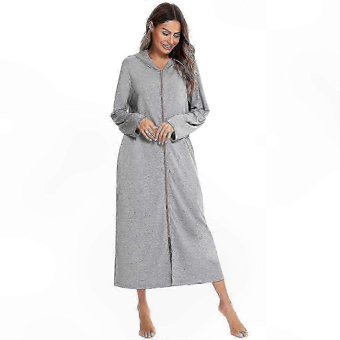 Soft Hooded Robe for Women - Full Length Zip-Up Cotton Lounger with Long Sleeves and Zippered Front Closure Nightwear Kimono