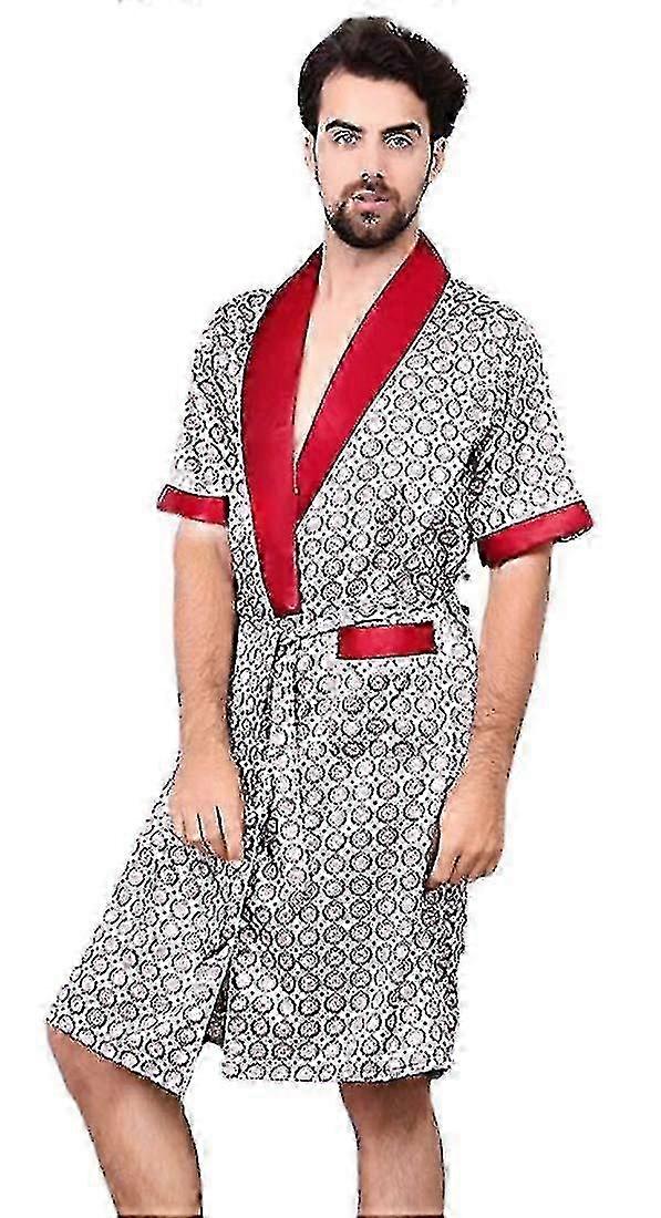 Printed Kimono Robe for Men Comfortable Satin Pajamas Gown