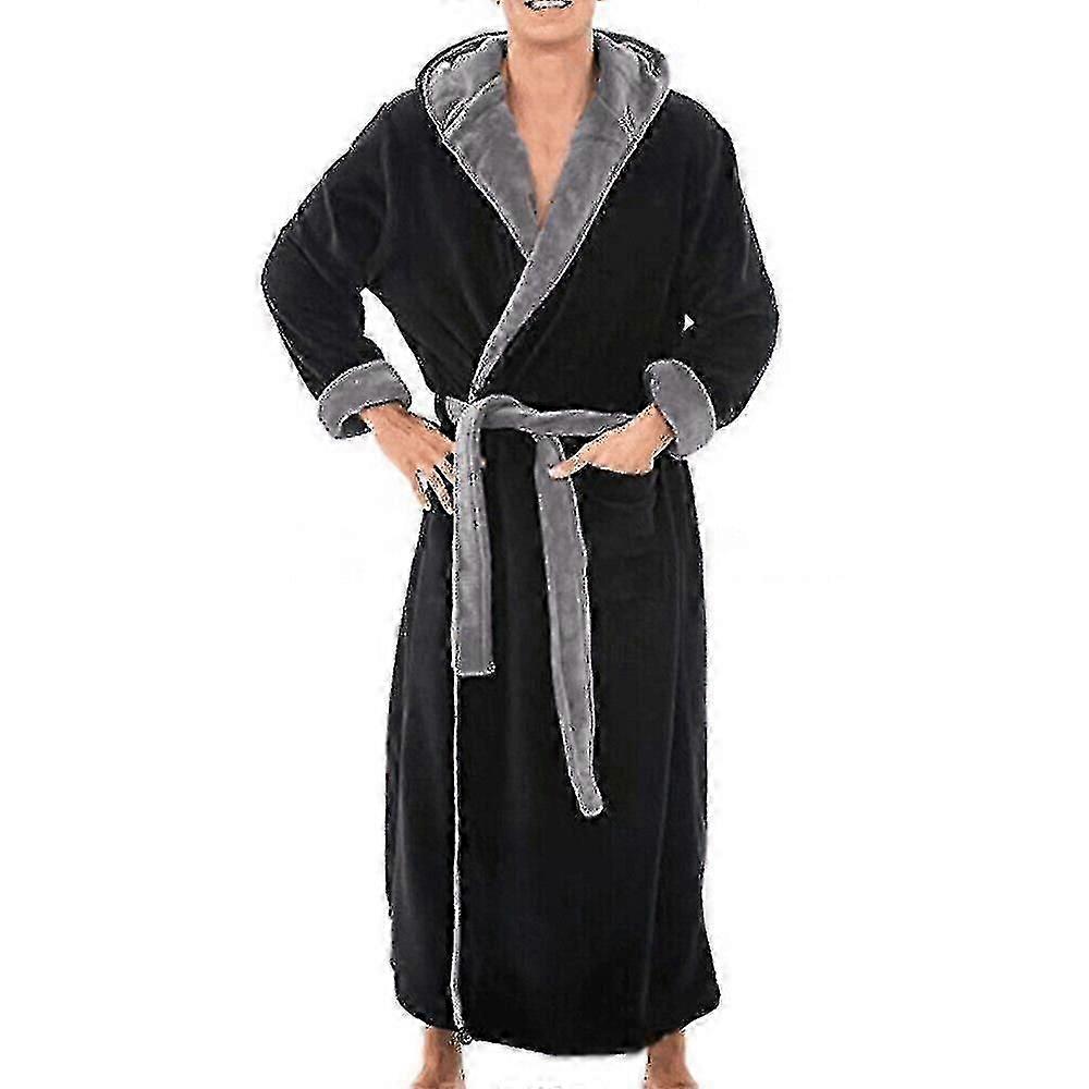 Men's Hooded Towelling Bathrobe Long Dressing Gown Winter Warm