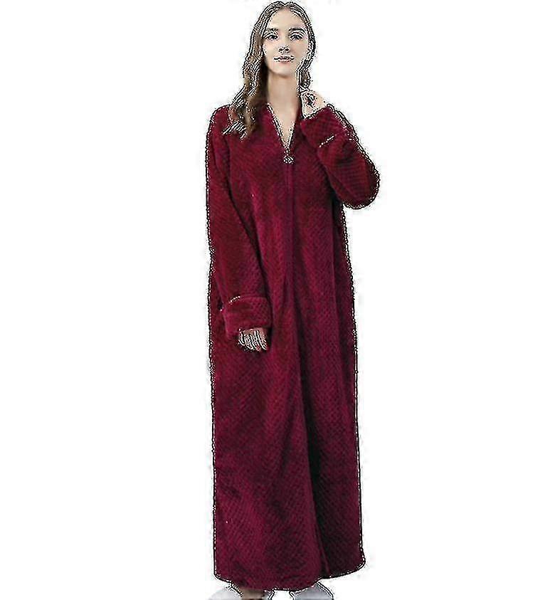 Zipper Bathrobe For Womens Flannel Fleece Warm Housecoat Nightgown