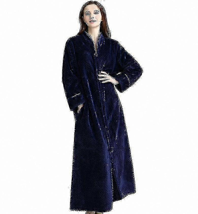 Women's Cozy Flannel Fleece Bathrobe with Zipper Warm Nightgown Housecoat