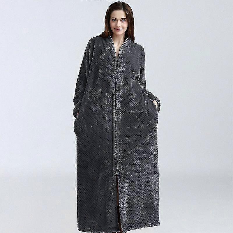 Warm Velvet Bathrobe for Men & Women - Thick Flannel Pajamas with Zipper, Winter Home Wear