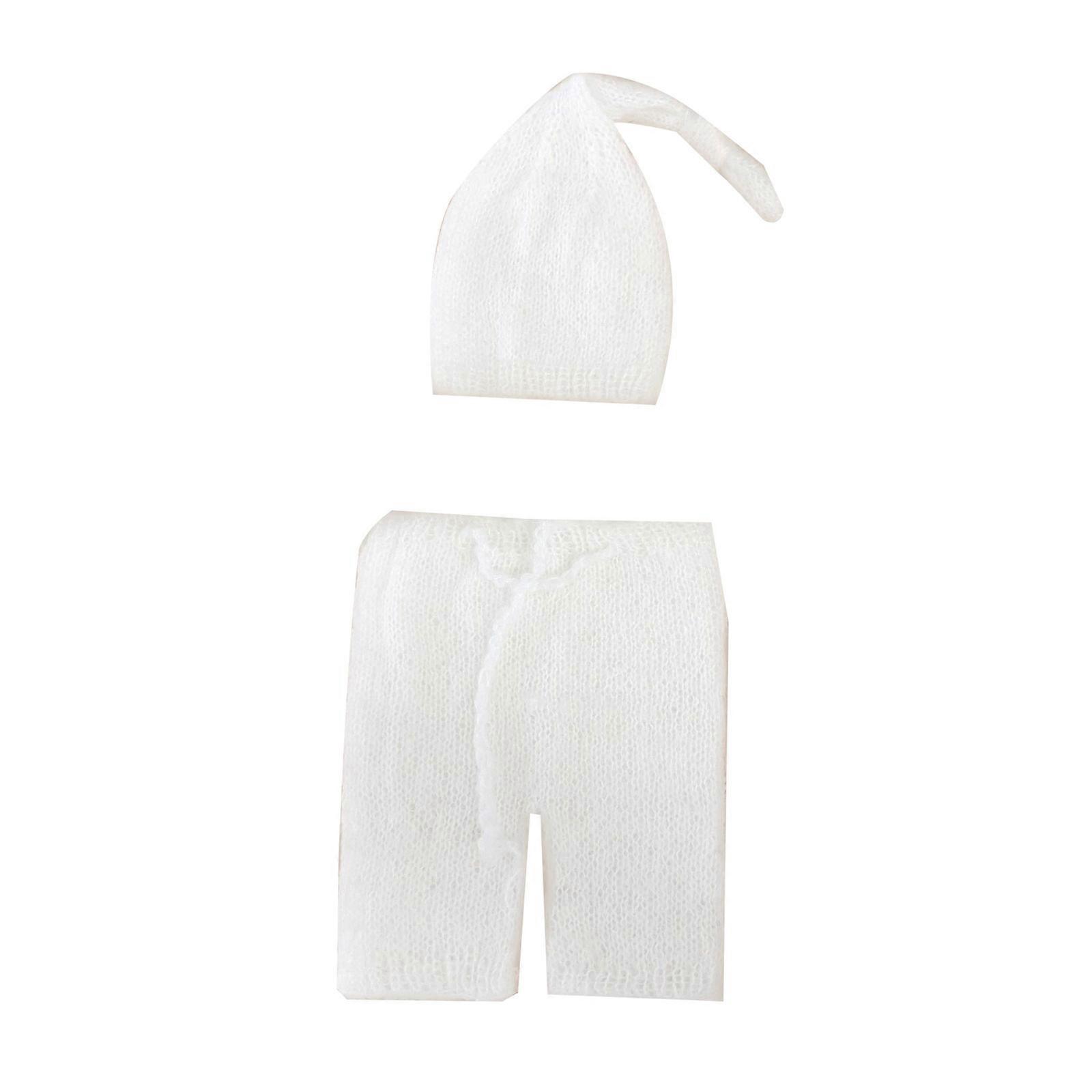 Photography Props Suit for Baby Girls 0-2M Photo Costume Knit Pants Beanie Cap Newborn Milestones Photo Clothing 2pcs White