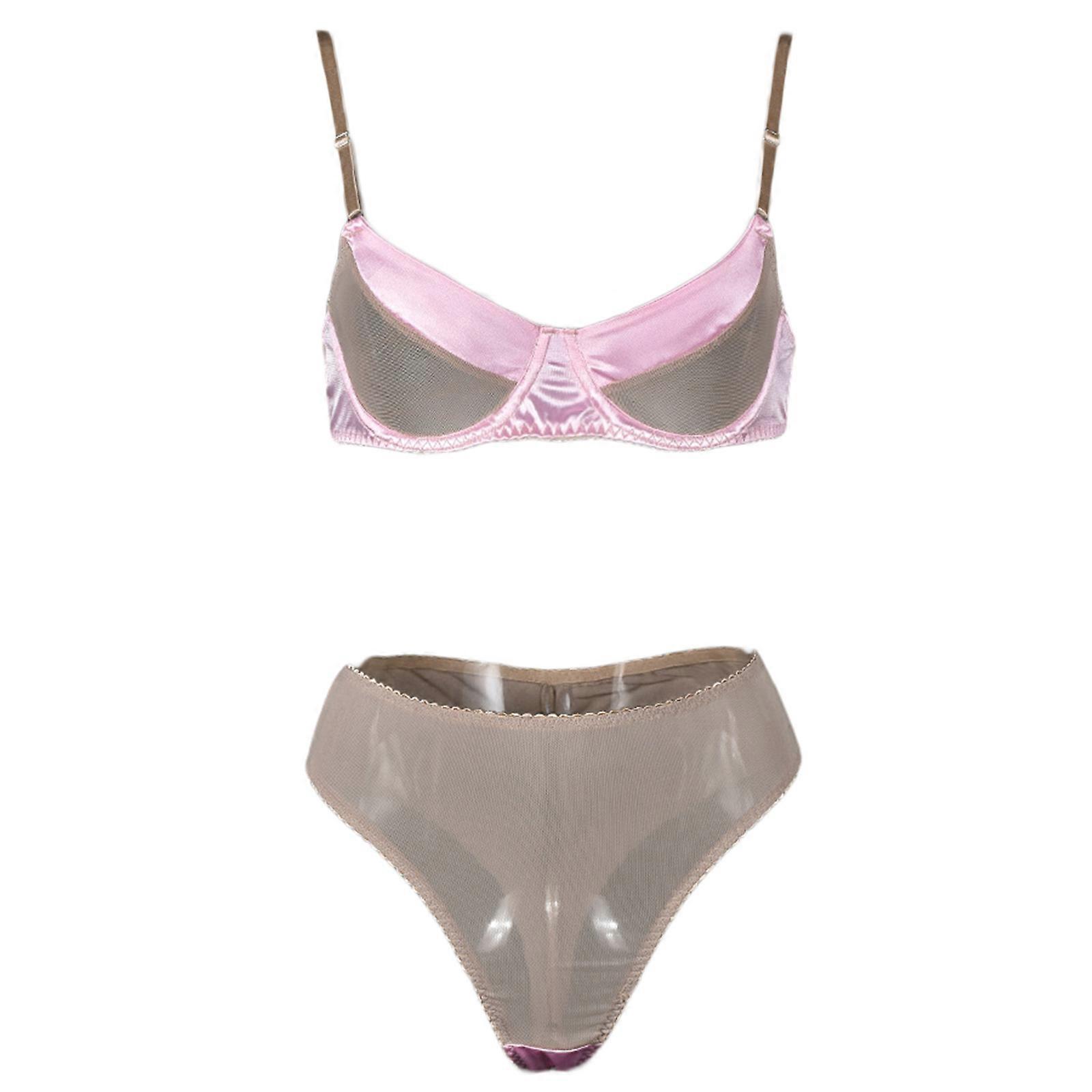 Womens Sexy Lingerie Suit Sheer Mesh Satins Bra and Panty Set Ladies Three-Point Set Sexy Pajamas Role-Play Suits Pink XL