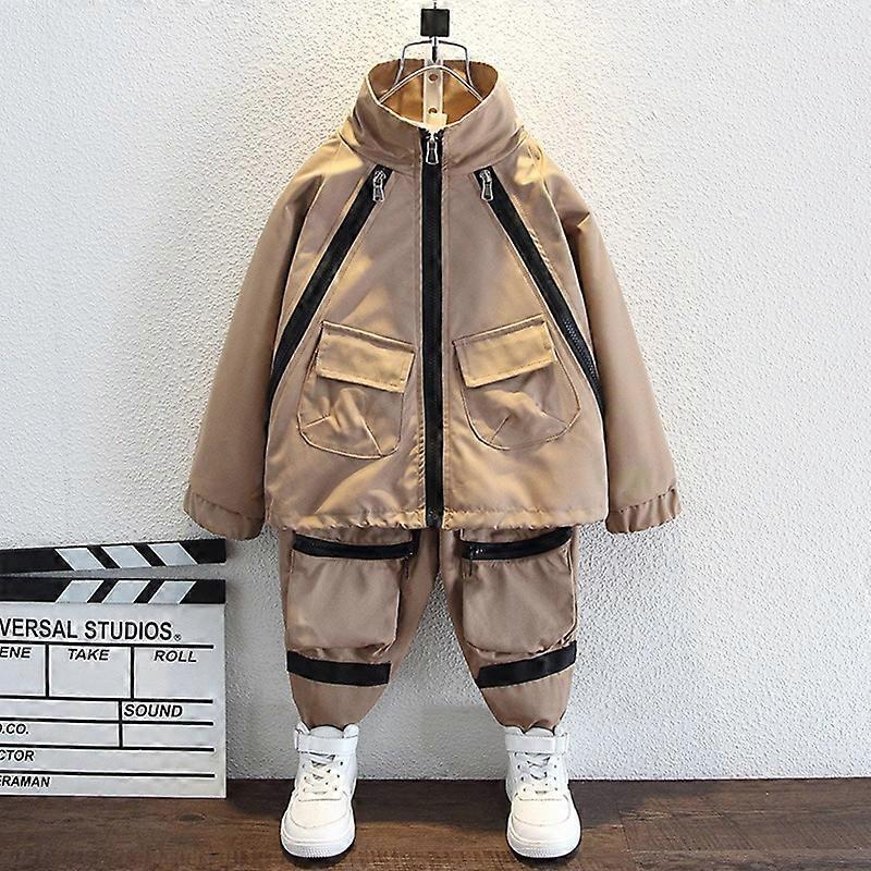 Kids camouflage suit 2023 spring and autumn new Zhongda childrens baseball suit two piece set childrens camouflage summer camp t
