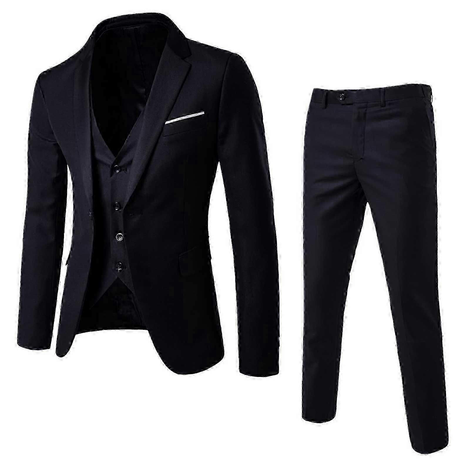 Set Include : 1Pc Blazer, 1Pc Vest, 1Pc Pants Condition : New Without Tag Material : 50 percent Cotton, 50 percent Polyester Features : 3pcs men pure color gentleman outfit set long sleeve one-button blazer fully-lined vest long pants suit for office wedding. Made of high quality cotton and polyester fabric, skin-friendly, does not irritate your skin, no itch. One-button closure, long sleeve, notch lapel, chest pocket and flap pockets, fully-lined button-down vest and pants. Perfect to pair them with solid color shirts in different colors, chic ties, and leather shoes. Suitable for party, cocktail, office, meetings, daily wear, work, other formal and casual occasions. Size Chart The suggested size is just for your reference. If your measurement is floating between two sizes, advise choosing the larger size. (Measurements shown in the size chart refer to item measurements, not body) Tag No. Recommended Size Bust Blazer Length Vest Bust Vest Length Waist Pants Length S S 40.2 or 102cm 27.2 or 69cm 37.8 or 96cm 21.7 or 55cm 33.1 or 84cm 42.5 or 108cm M M 41.7 or 106cm 27.6 or 70cm 39.4 or 100cm 22.0 or 56cm 34.6 or 88cm 43.3 or 110cm L L 43.3 or 110cm 28.0 or 71cm 40.9 or 104cm 22.0 or 56cm 36.2 or 92cm 44.1 or 112cm XL XL 44.9 or 114cm 28.3 or 72cm 42.5 or 108cm 22.4 or 57cm 37.8 or 96cm 44.9 or 114cm XXL XXL 46.5 or 118cm 28.7 or 73cm 44.1 or 112cm 22.4 or 57cm 39.4 or 100cm 45.7 or 116cm 3XL 3XL 48.0 or 122cm 29.1 or 74cm 45.7 or 116cm 22.8 or 58cm 40.9 or 104cm 46.5 or 118cm Friendly Tips: The size is measured by hands, please allow minor error of measurement. Photo color might be a little different from the actual product due to color display of different monitors.