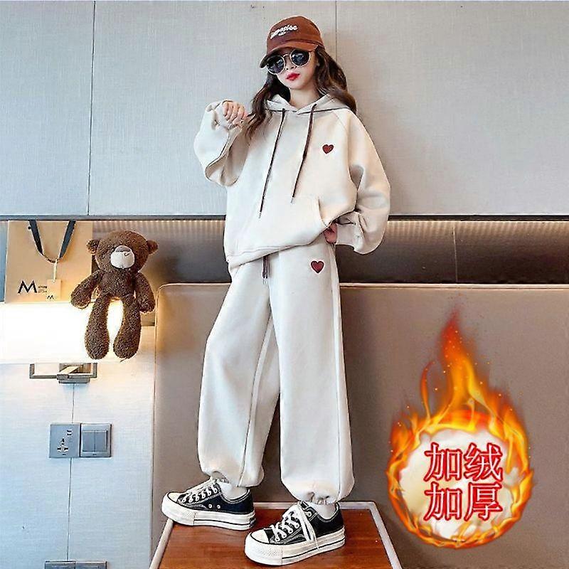Kids' Suit Fleece-lined Thickened Autumn And Winter Big Kids' Sports Sweatshirt Two-piece Suit Children's Fashionable ClothingKIDS Outfit Sets