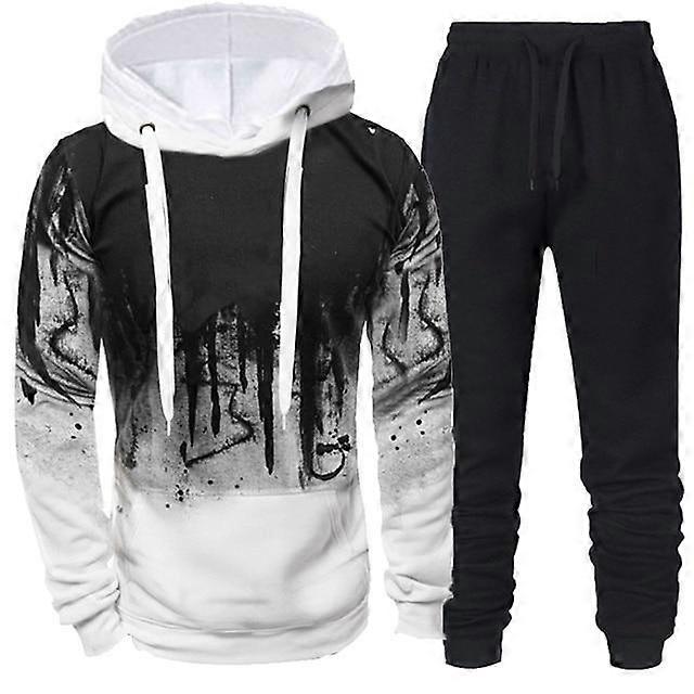 New Spring and Autumn Men's Sweater Suit Male Clothing Pullovers 2-Piece Hoodie+Trousers Fashion Splashing Ink Sportswear