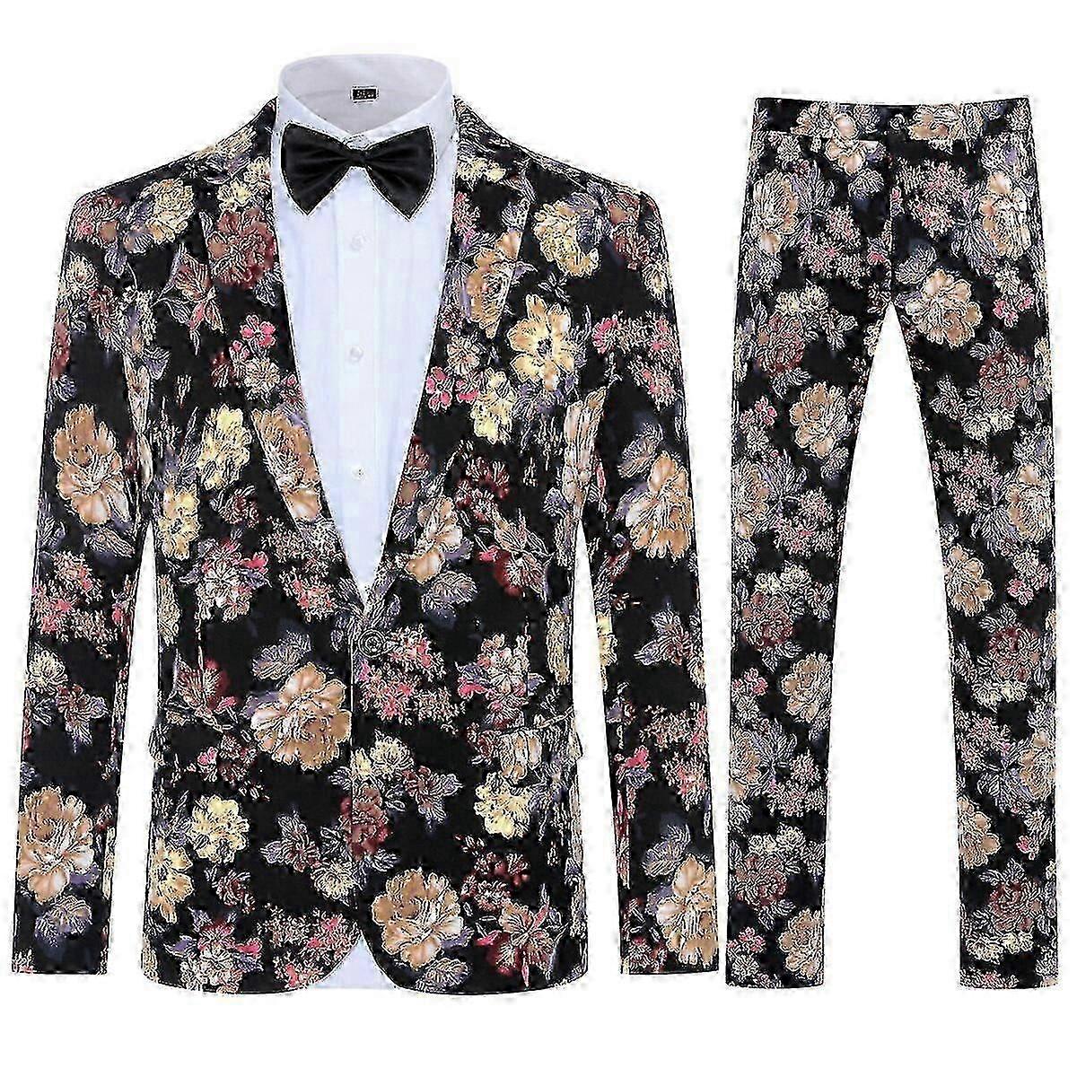 Men's 2-Piece Floral Notched Lapel Dinner Suit with One Buckle - Prestige Wedding Dress Suit by Allthemen