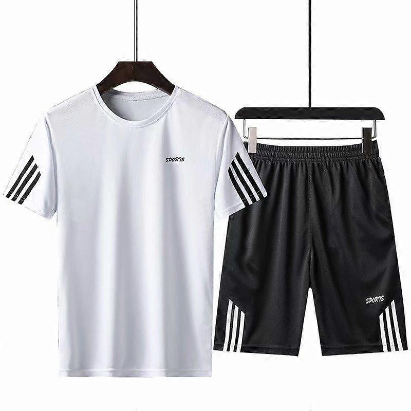 Casual Suit Sweatpants Summer Solid Stripe Tracksuit Two Piece T-shirts+Shorts Mens Sportswear Jogger Slim Fit Sportsuit