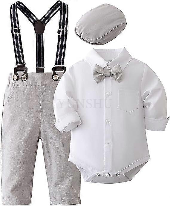 Baby Boy Suit Infant Tuxedo Gentleman Suits Outfits Bowtie Shirt Pants Beret Hat