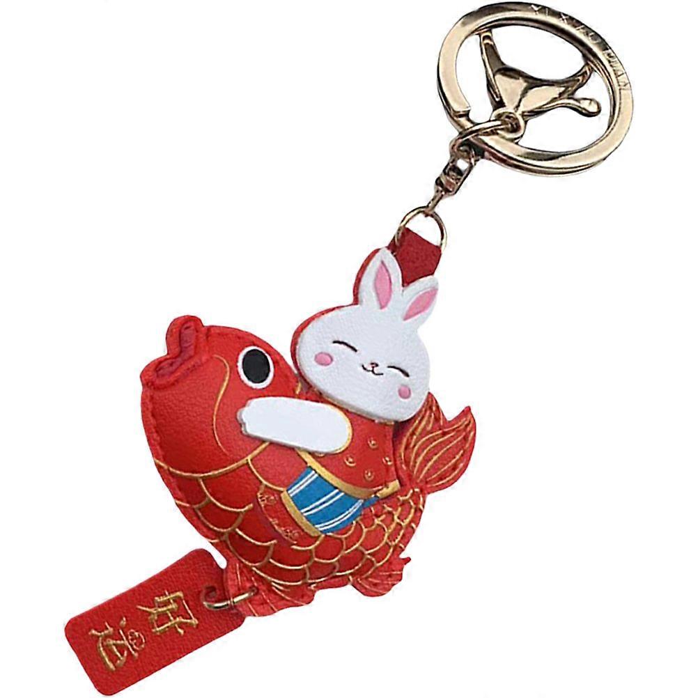 Cute Rabbit Design Keychain Bag Accessory Bunny Shape Hanging Decor Leather Alloy 1Set