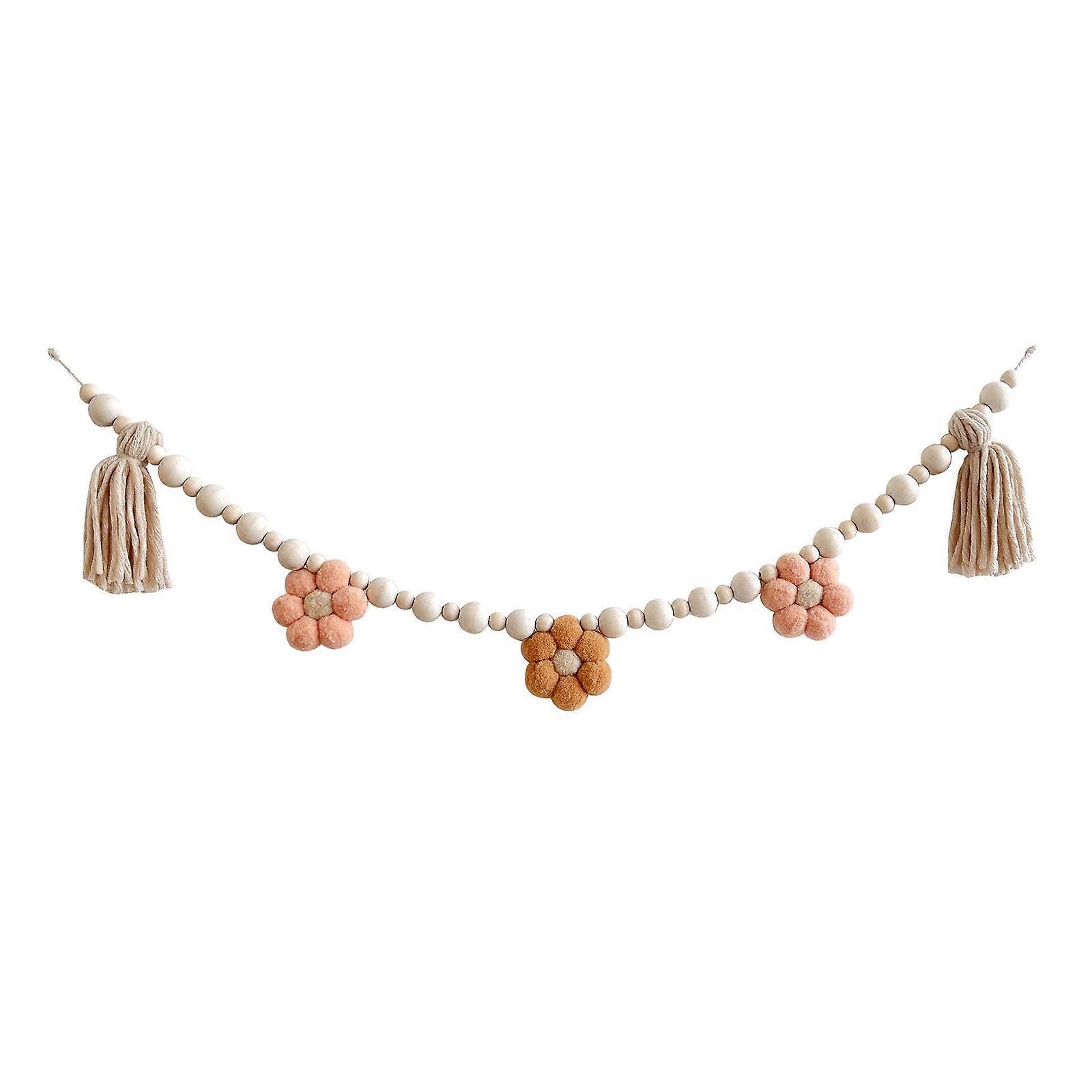 Cute Daisy Flower Birthday Party Banner Holidays Party Decoration Boho Tassel Garland With Wooden Beads Room Window Wall Pendant