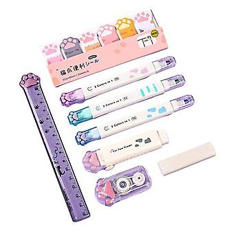 Complete Cat Themed Set: Includes a retractable eraser, spare eraser, correction tape, ruler, plastic storage box, 3 double-sided highlighters, and 120 sticky memos, providing a comprehensive selection for daily use.