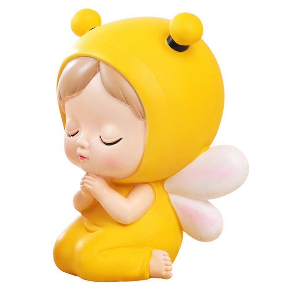 Cute Money Saving Bank Bee Shape Resin Coin Money Pot Home Decoration Yellow 17.5X14.5X12.5CM 1Pc