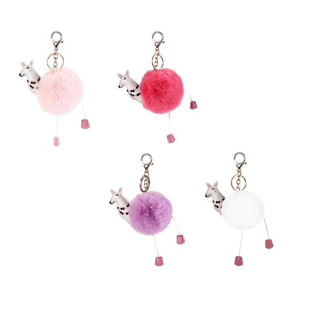 Cute Plush Ball Key Chain with Alloy for Bag Decoration Hanging Ornament Assorted Color Lightweight Durable Smooth Surface 4Pcs