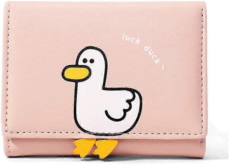 Cute 3D Duck Tri-folded Wallet Small Wallet Cash Pocket Card Holder ID Window Purse for Women (PINK, DUCK PRINT)