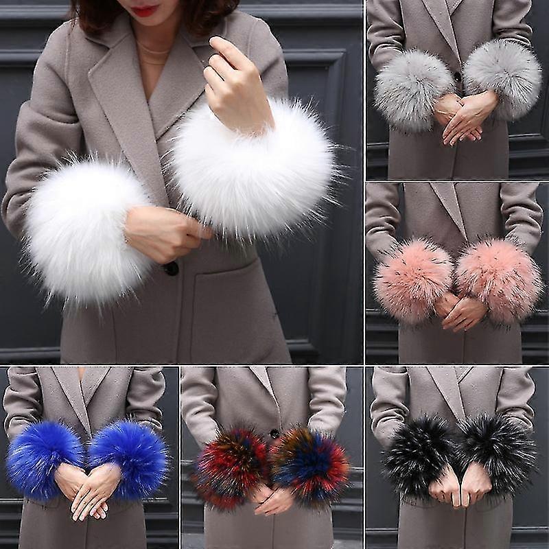 Faux Fox Fur Cuffs Arm Warmer Winter Warm Women Wrist Cuff Sleeves Gloves Pompom Faux Fur Bracelet Wristband Sleeves Accessories