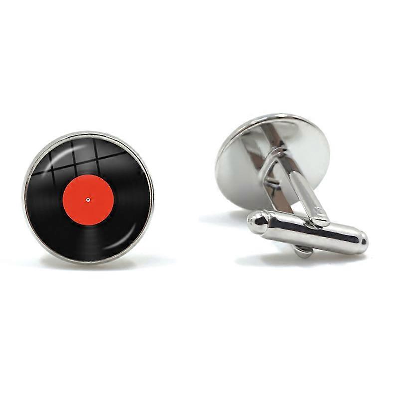 Vinyl Record Cufflinks DJ for Men Retro Music Art Cuff Link Round Dome Glass Cabochon Fashion Men Women Jewelry Gift