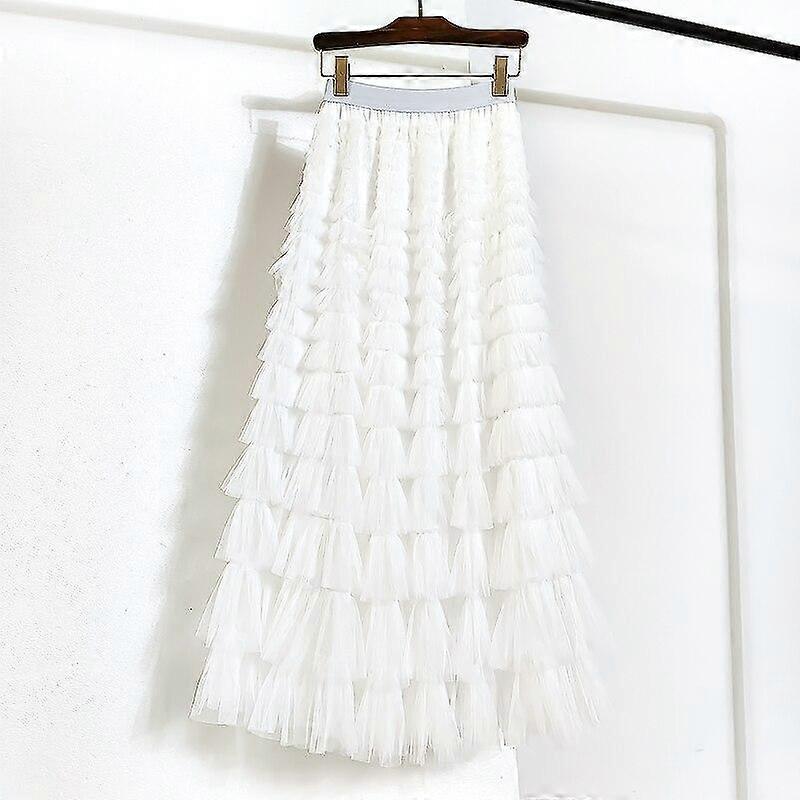 Tutu Cake Skirts Women Elegant Cascading Ruffles A Line Long Skirts Female Casual Elastic Waist Party Lace Skirt Faldas