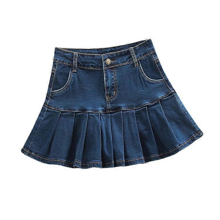 Denim Skirt with Ruffles Harajuku Y2K Jeans Skater Woman High Waist Bottom Female Casual Pleated Micro Mini Short