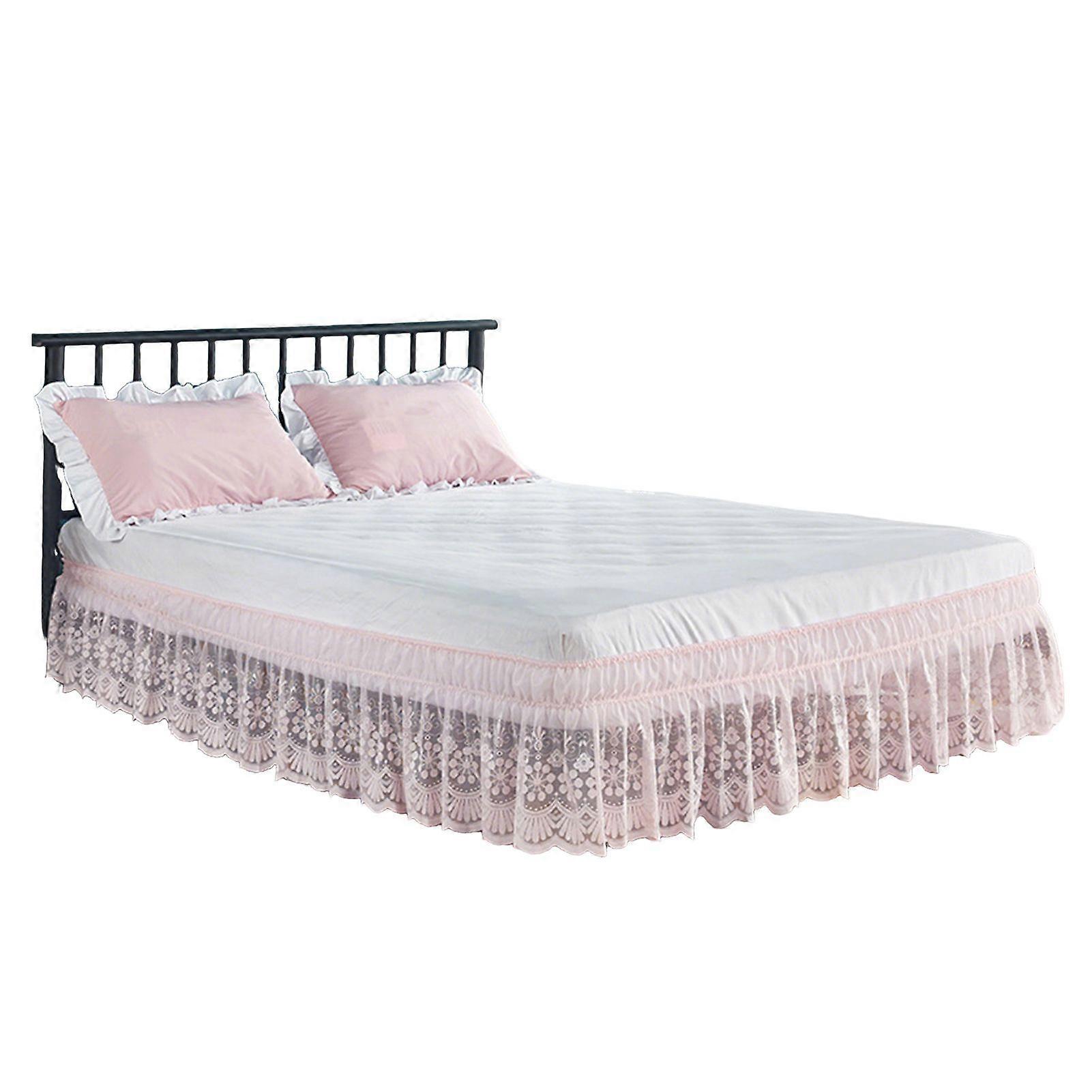 Lace Bed Skirt 15" Drop Elastic Dust Ruffle Bedskirt Wrap Around 3 Sides of Bed Machine Washable Bed Skirt for Twin/Full/Queen/King Bed