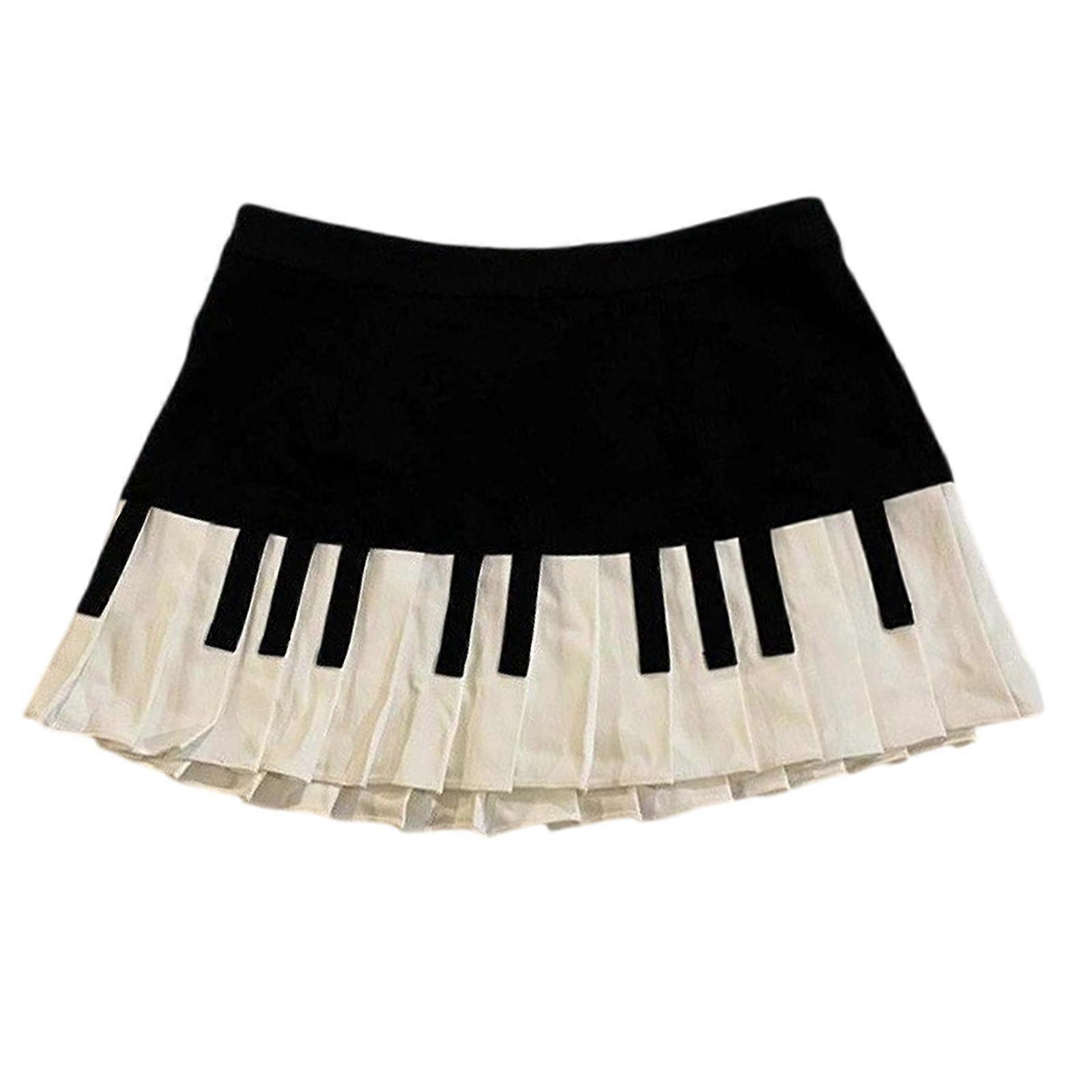 Women's High Waist School Flared Casual Mini Skater Skirt Vintage Aesthetic Piano Key Print A Line Pleated Short Skirt XL