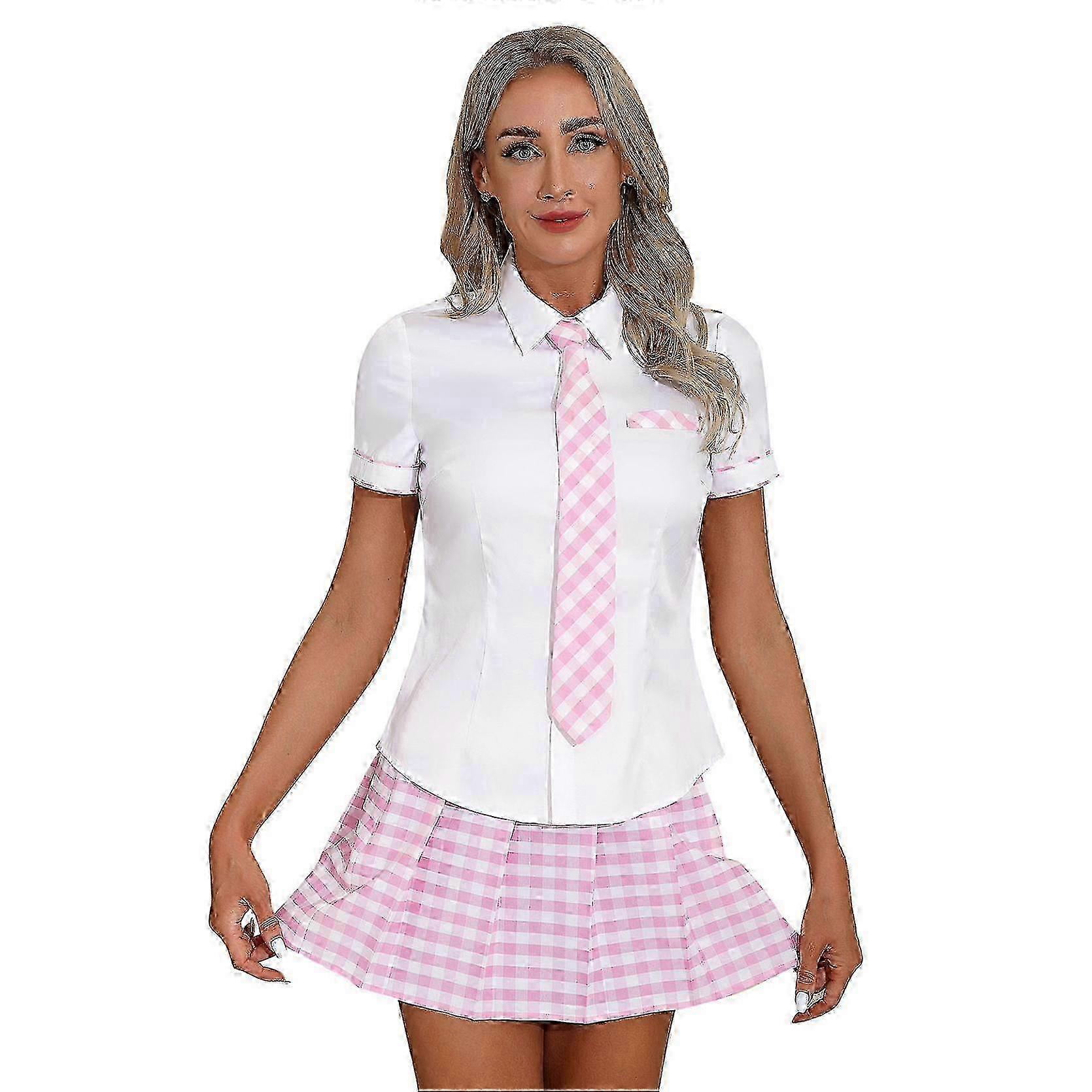 25-26 Women's Schoolgirl Cosplay Costume Uniform Mini Pleated Skirt with Oxford Tie Shirt