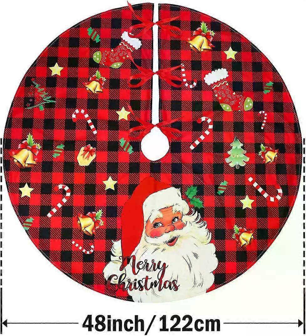 Christmas Tree Skirt 48 Inch Red Rustic Xmas Tree Skirt with Snowflake, Black Red Buffalo Plaid Christmas Tree Skirt Ornaments f
