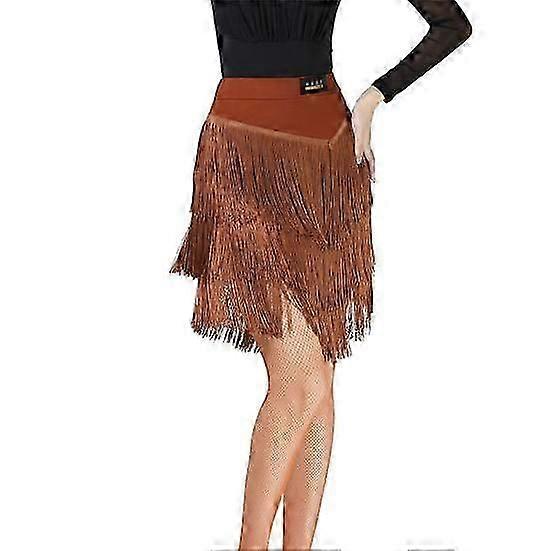Latin Dance Tassel Skirt Elegant High Waist Solid Color Mini Skirt Dance Training Performance Clothes