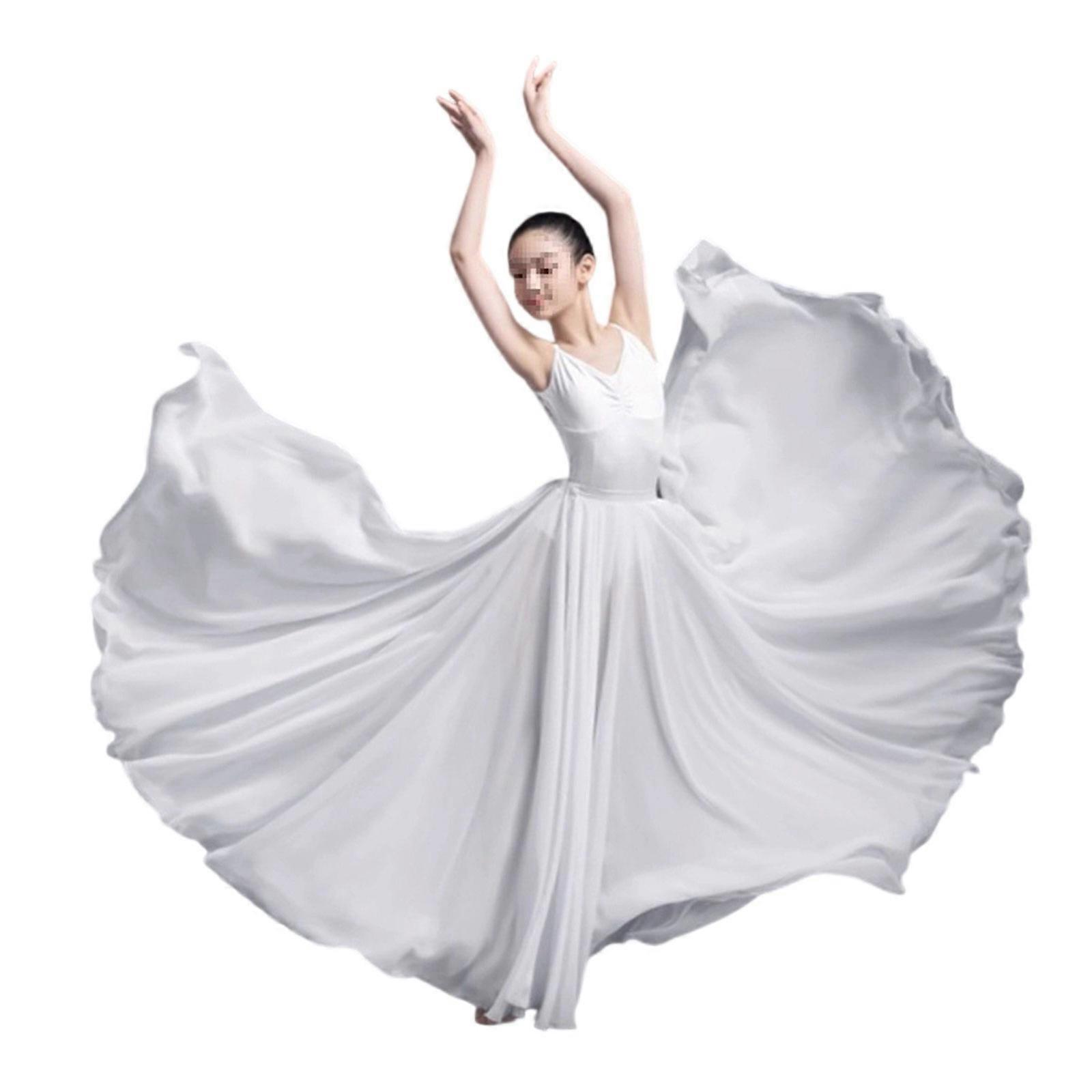 Stretchy Lyrical Dance Skirt Long Large Circle Dance Skirt Modern Ballet Dance Costume for Photography Rehearsal Skirt 1080 95 White