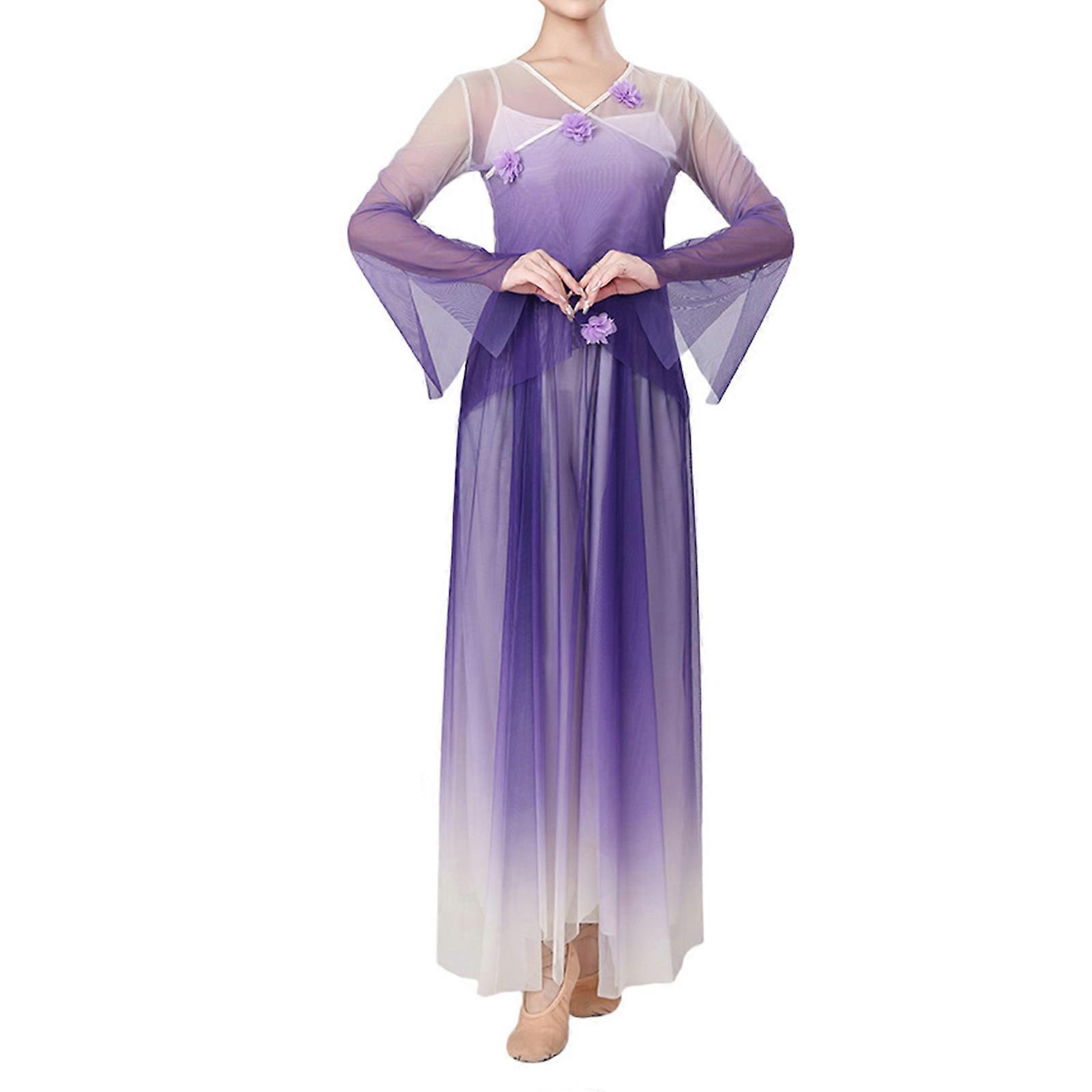 Elegant Net Dance Skirt Pants Professional Blossomy Embroidered Costume For Theater Dance Flexible Ventilated Execution Wear Gradient purple Top XL
