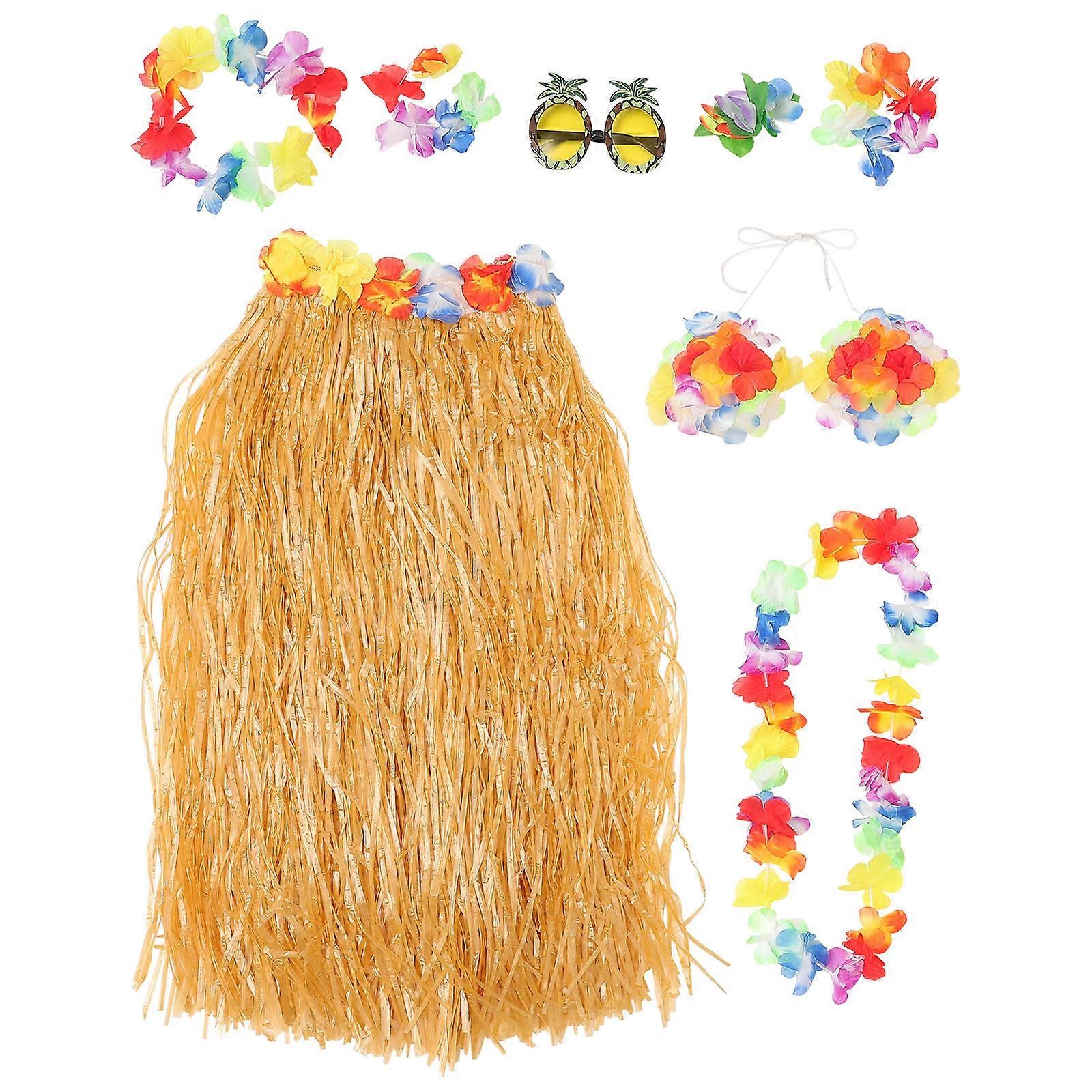 Skirt Adult Costume Dress Tropical Grass Dance Skirt Flower Bracelets Headband Bra Hair Clip Glasses Set Beach 60CM Adjustable 8Pcs