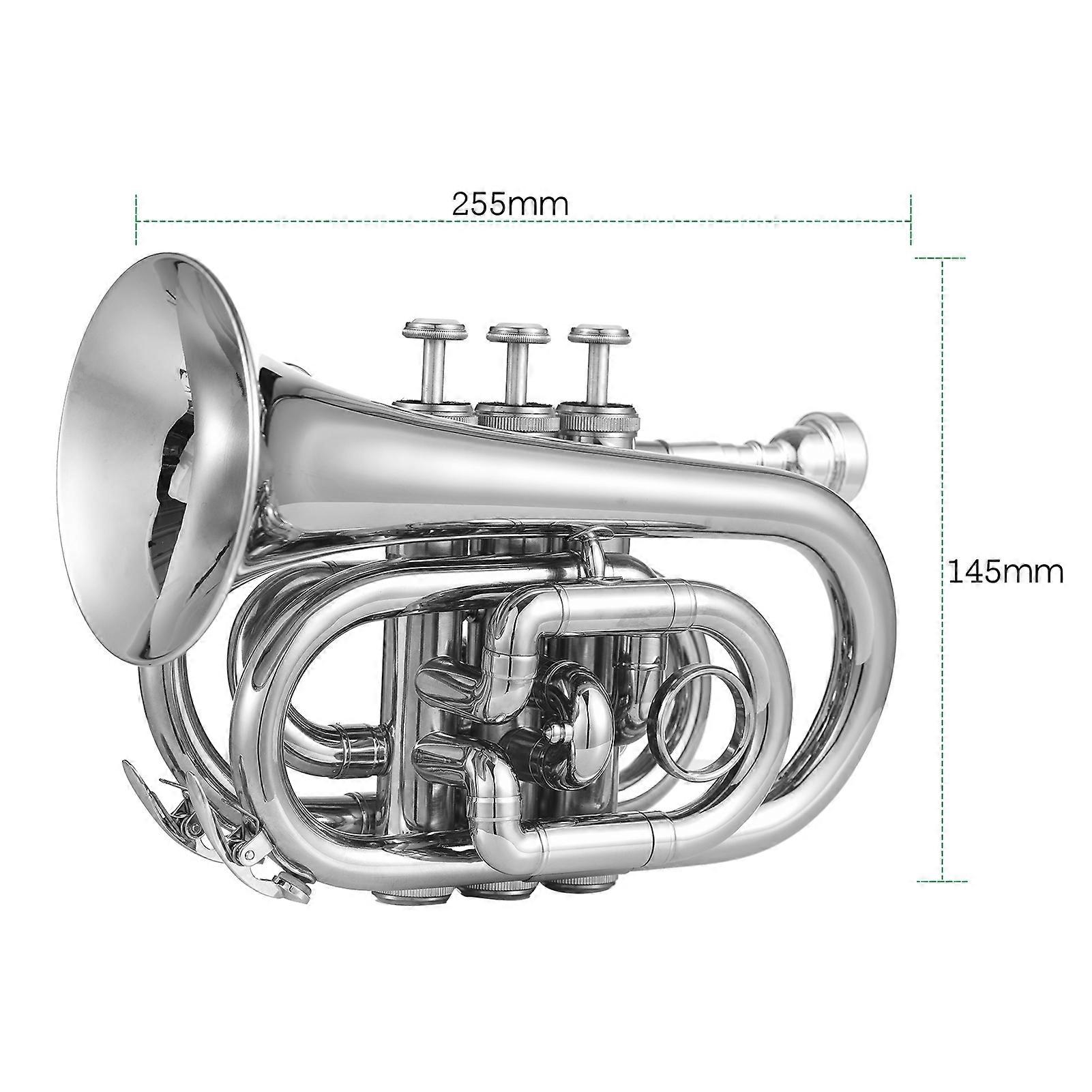 Bb Trumpet Mini Pocket Trumpet with Mouthpiece Carry Bag Gloves Cleaning Cloth Brass Instrument